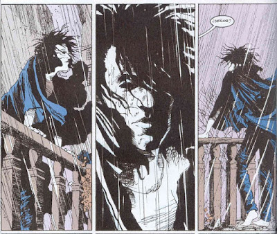 Viñetas como la de la barca surcando el agua con la ciudad y el puerto al fondo son magistrales por la calidad de su claroscuro con trama de plumilla o pincel, siempre tenebrista en el caso de Ortiz. El personaje que vemos en esta viñeta nos resultará familiar incluso sin haber leído ningún ejemplar de esta serie protagonizada por el mestizo y ex soldado Ned Ellis, considerado como un traidor por los blancos, y respetado por los sioux como chamán. Su compañero de fatigas, su conciencia intelectual es el periodista Willy Richards, conocido como Poe por su gran parecido con el escritor. También podemos apreciar cómo Ortiz tomó como modelo a la siempre redituable Joan Crawford, tan admirada hoy como ayer, que encarna a la mujer dura y de pocos sentimientos de este número. Mágico Viento (o Viento Mágico, como fue traducida una vez al español) es una serie que continúo leyendo, si prisa pero sin pausa. Como tantos otras maravillas de Bonelli que nunca verán la luz en español. Toca aprender italiano, no hay más.
